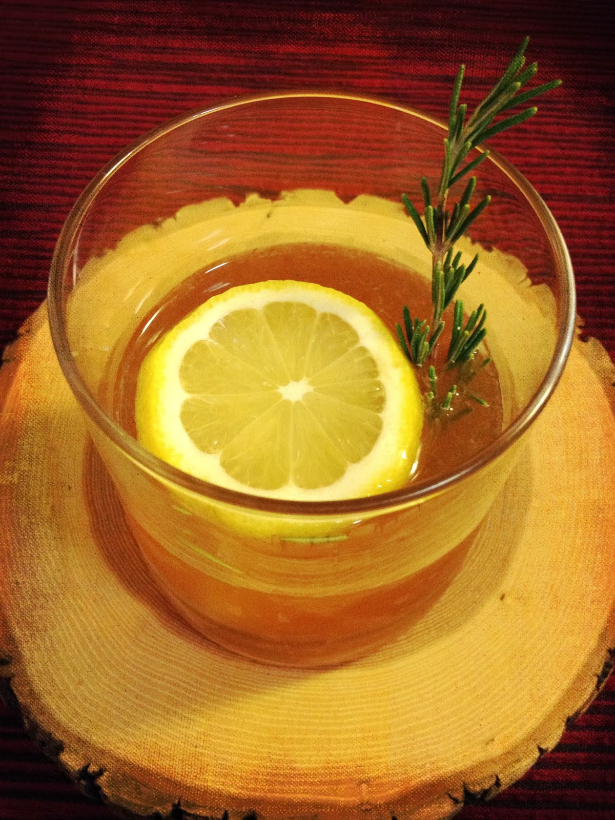 - Garnish with a sprig of rosemary and a lemon wheel.
