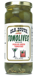 Actually it wasn’t an olive, it just looks like one. It’s called a TomOlive and is a small green pickled tomato. “For a