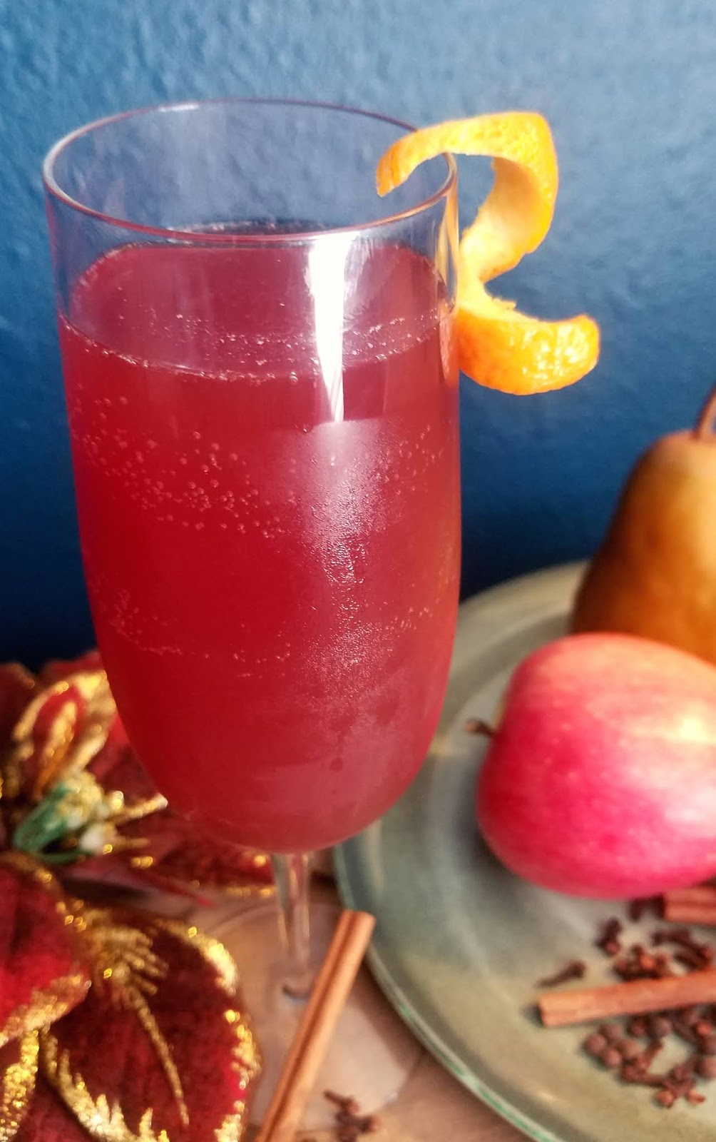 When it comes to the holiday season, colors and scents are, to me, desirable elements in creating the ultimate party beverage. It's far more fun to have a drink that looks and smells just as festive as it tastes! I'm a huge fan of ciders and mulling spices during the colder months, but having something that sparkles in a glass seems to imbue the essence of holiday style. The following recipe is one I recently created to compliment both the cozy and the sparkling, and, it's already a favorite request of friends.