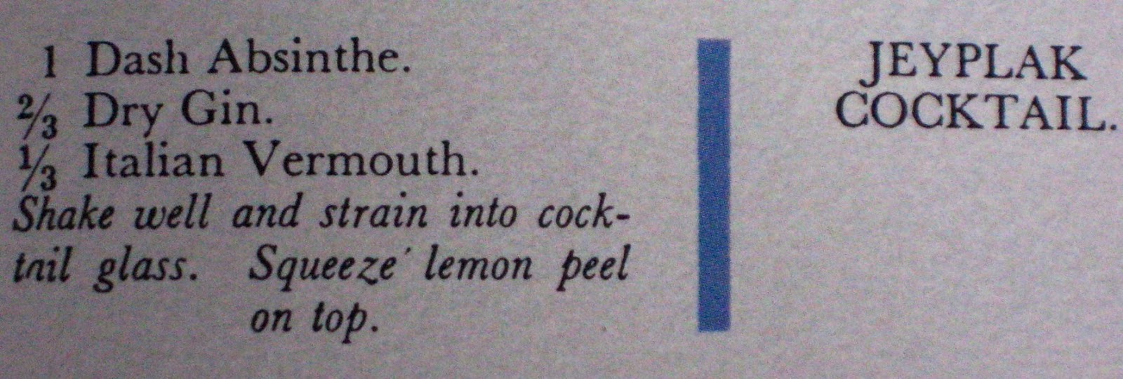 The ATTY and the Jeyplak are just two of many absinthe cocktails from the Savoy that also have gin and vermouth. The addition of Creme de Violette in the former enhanced the cocktail from both taste and visual standpoints, and hopefully inspired the audience to think again about many of the cocktails in the Savoy: as fresh and original today as they were 83 years ago.